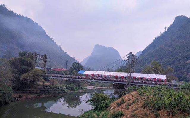 Hình ảnh về việc người dân dựng rạp đám cưới giữa cầu ở Bắc Kạn sau khi được đăng tải trên mạng xã hội Facebook đã gây xôn xao dư luận.
